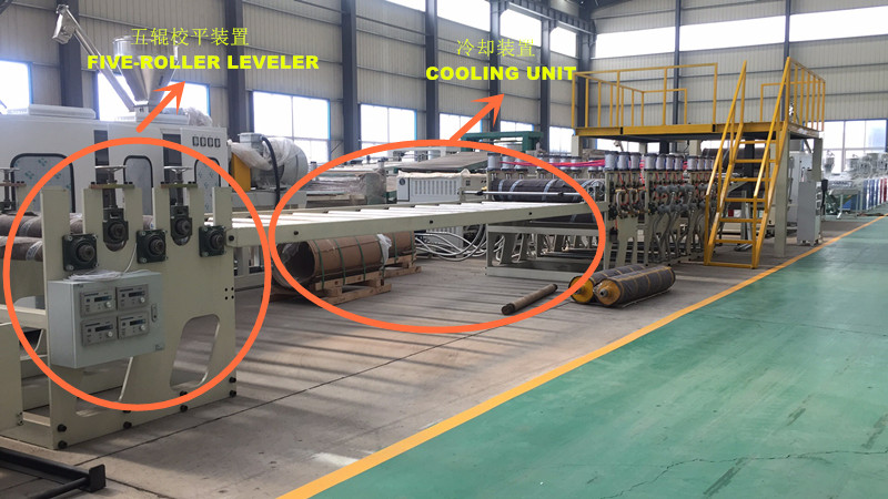 生产线的复合模头采用T型结构,使用P20模具钢制造,流道表面粗糙度达到Ra0.05μm。模头设置9个加热区,加热功率27千瓦,最大生产宽度1300毫米,能够精确控制PE芯层的挤出厚度和平整度。三辊压光机的辊面有效工作尺寸为Φ500×1500毫米,线速度可在0.5-8米/分钟内通过ABB变频调速系统精确调节,确保板材表面光洁度。