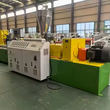 这是整个生产流程的核心环节。混合好的粉料通过真空上料机被吸入锥形双螺杆挤出机的料斗中。